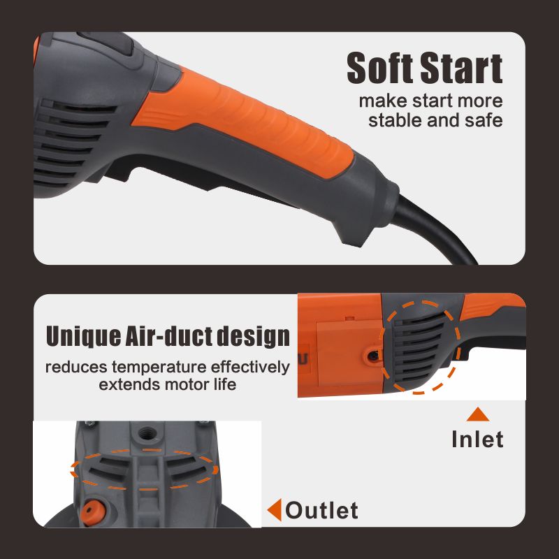 High power, Angle Grinder, Multi-function, Hand grinder, Polisher, Sander, EXTERNAL CARBON BRUSH, SOFT START,
