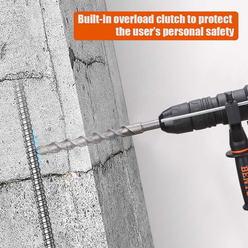 In addition to being suitable for general operations,heavy-duty rotary hammer is also designed for professional users.Opening hole on concrete, brick, stone , multi-function heavy duty rotary hammer is good choice! The heavy-duty rotary hammer under Benyu brand can be used for drilling holes in concrete,cement,brick,stone with hammer drilling and heavy duty chiseling.